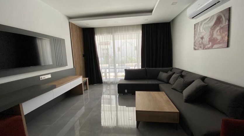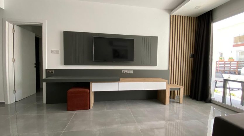 This furnished 1-bedroom apartment, part of the Courtyard project, offers comfort and convenience in the Long Beach area of İskele, Cyprus. The property is situated just 600 meters from the stunning Long Beach, known for its beauty and proximity. It boasts a strategic location, being within a 10-minute reach of hospitals, shopping malls, and the Eastern Mediterranean University.
